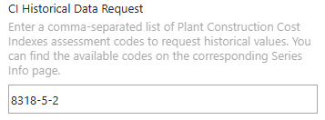 - CI Data Request accepts codes from Plant Construction Cost Indexes only.