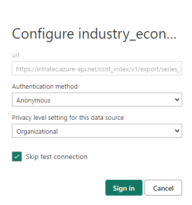 A pop-up will open to configure access to the Intratec APIs. Set it up as displayed below and click Sign in:
