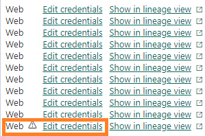 - Under Data source credentials, click on each of the Edit credentials buttons next to Web.