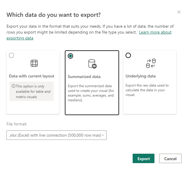 - On the upper-right corner of the graph, click on the three dots and select Export data.