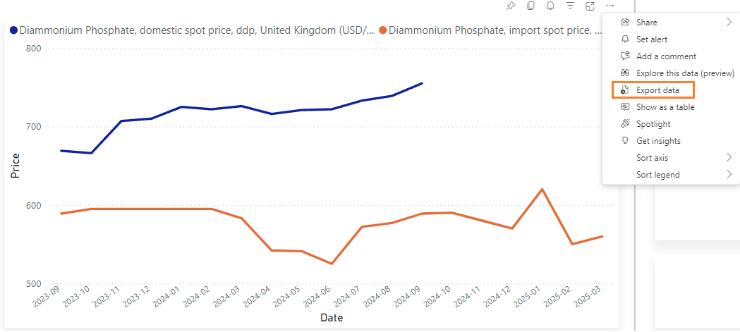 - On the upper-right corner of the graph, click on the three dots and select Export data.