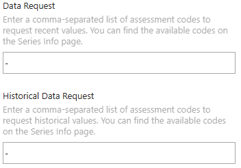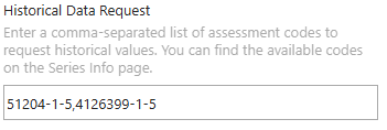 - In the Historical Data Request parameter, enter a comma-separated list of assessment codes to retrieve the full history of values.